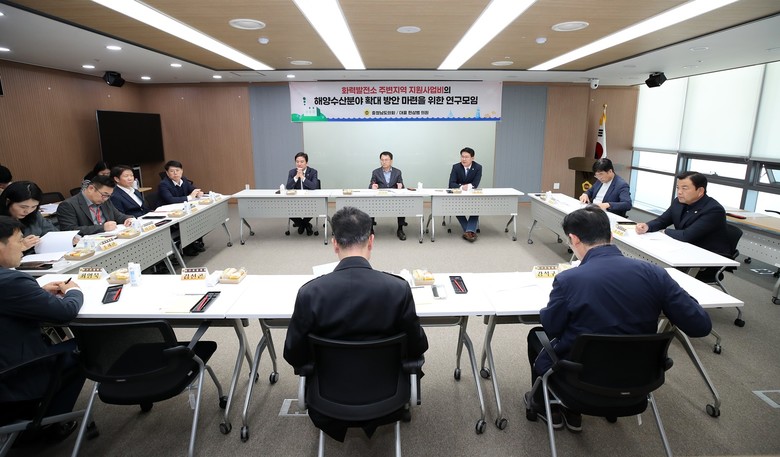 [충남 세계타임즈=백택기 기자] 충남도의회 ‘화력발전소 주변지역 지원사업비의 해양수산분야 확대 방안 마련을 위한 연구모임’(대표 편삼범)은 4일 충남도의회 회의실에서 3차 회의를 열고, 발전소 주변지역 해양수산분야 지원사업비 재원 마련 및 확대 방안 등을 논의했다.