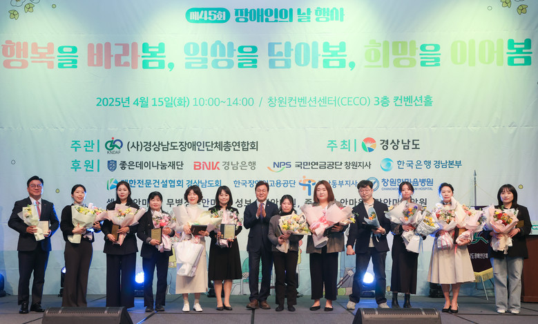 – 올해 슬로건은 ‘행복을 바라봄, 일상을 담아봄, 희망을 이어봄’ [세계타임즈=경남 최성룡 기자] 경상남도(도지사 박완수)는 15일 오전 11시, 창원컨벤션센터 컨벤션홀에서 열린 ‘제45회 장애인의 날 기념행사’에서 공존과 포용의 가치를 강조했다.