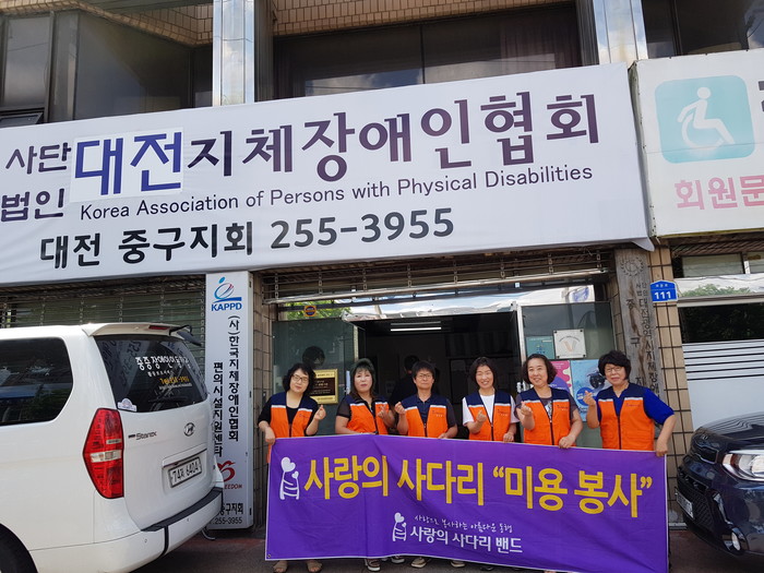 중구지체장애인협회 김채린 지회장은 “매월 둘째주 월요일에 사랑의 사다리 밴드 봉사단체에서 미용봉사를 지원해주셔서 큰힘과 위안이 된다.“면서 감사함을 전했다.