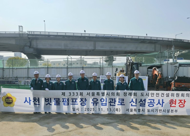 [서울 세계타임즈=이장성 기자] 서울특별시의회 도시안전건설위원회(위원장 강동길)는 13일(목) 제333회 정례회 도시기반시설본부 시설국 소관 행정사무감사 중 사천(망원)빗물펌프장 유입관로 신설공사 현장을 방문해 사업 추진 현황과 공사장 안전관리 실태를 점검했다.