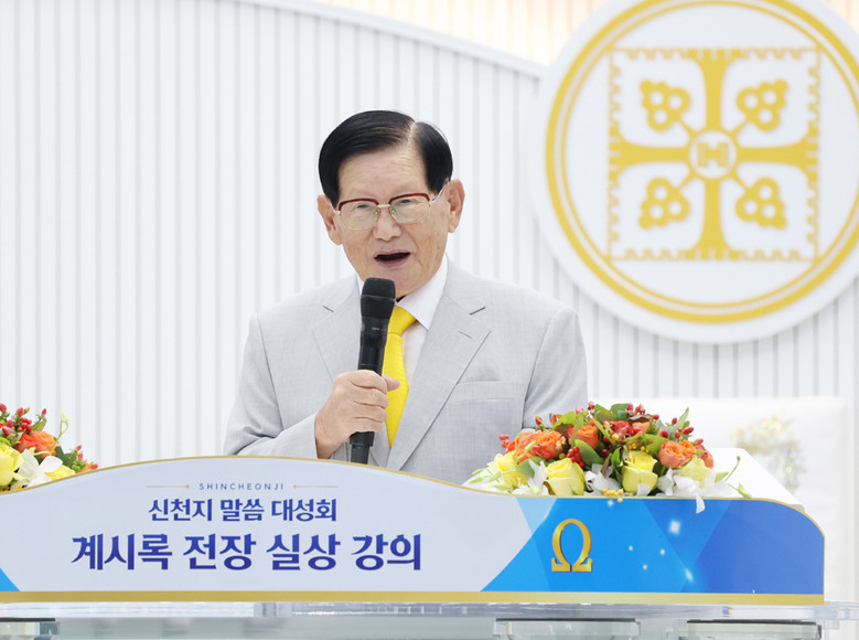 이날도 이만희 총회장은 ‘계시록 전장 실상 강의’를 주제로 1시간가량 진행된 강연에서 목회자들이 가장 궁금해하는 ‘요한계시록’ 전장을 훑어가며 예언과 실상의 핵심을 요약해 강의했다.