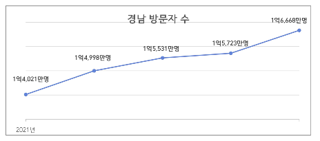 2025년 경남 방문자 수는 2024년(1억 5,723만 명) 대비 6.0% 증가해, 같은 기간 전국 17개 시도의 평균 증가율(5.8%)을 웃돌았다.