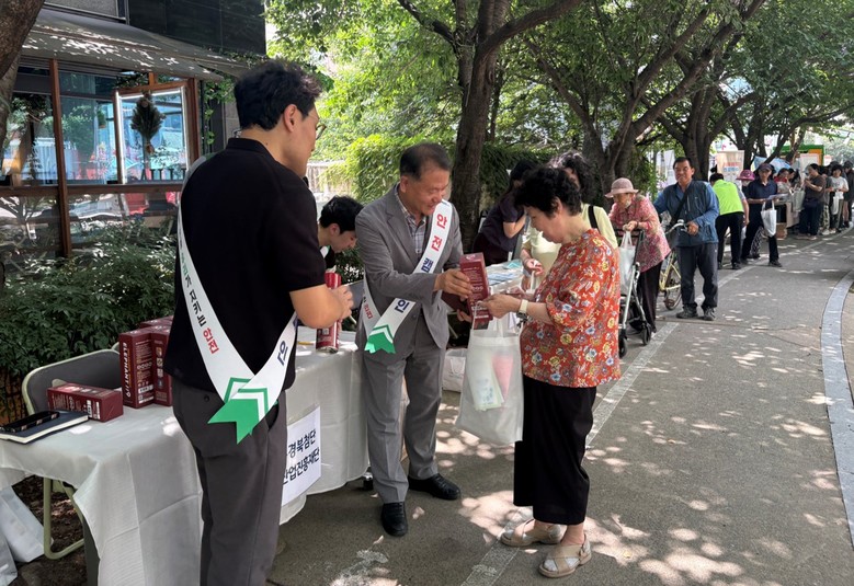 현장에서 케이메디허브와 해안동 행정복지센터는 관내 어르신과 주민을 대상으로 간이소화기 200개를 배부했다.