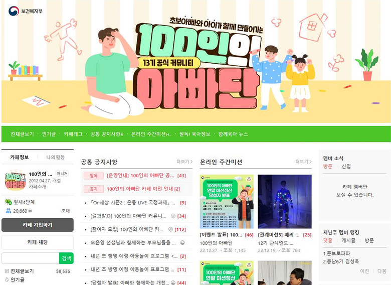 100인의 아빠단은 육아에 관심 있는 아빠 100명을 선정해 즐거운 육아를 위한 고민을 나누고 노하우를 공유하는 모임으로 2019년 첫 활동을 시작해 올해로 7기를 맞았다.
