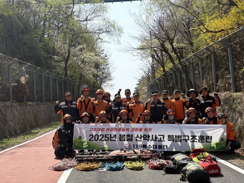 이번 훈련은 봄철 등산객 증가에 따른 실족, 추락 등 산악사고 발생 시 신속한 구조활동을 통해 인명피해를 최소화하고 산악구조 기술을 숙달하기 위해 추진됐다.