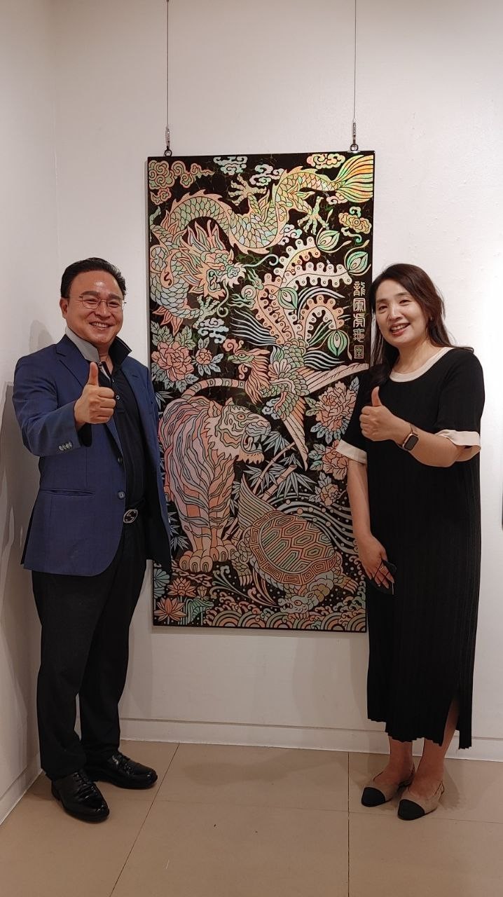 배민정 작가는 아차산 본당의 “헬레나”로 신앙심이 두터운 신자로서 이번 전시회 대표작인 최후의 만찬과 성모마리아, 사신도 대작, 치광대진정미 등 20여 작품이 전시되었는데 전시된 작품 중 10여 점은 애호가들의 품으로 안겼다고 말했다.