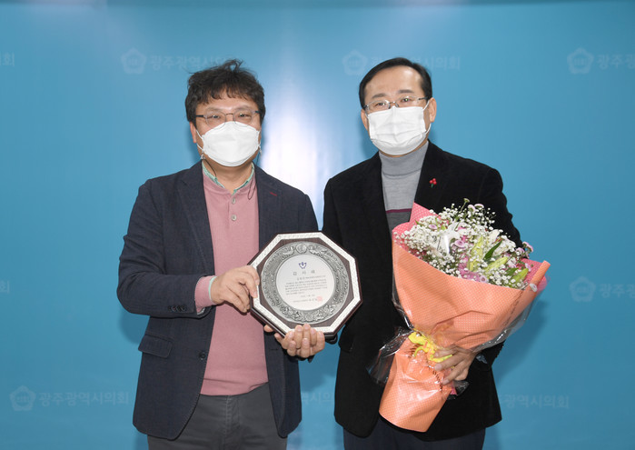 [광주=세계타임즈 손권일 기자] 광주광역시의회 김동찬(더민주· 북구5· 사진) 의원은 30일, 광주·전남 기자협회(회장 최권일)로부터 지역현안 해결 및 지방언론 발전에 기여한 공로를 인정받아 감사패를 수상했다.