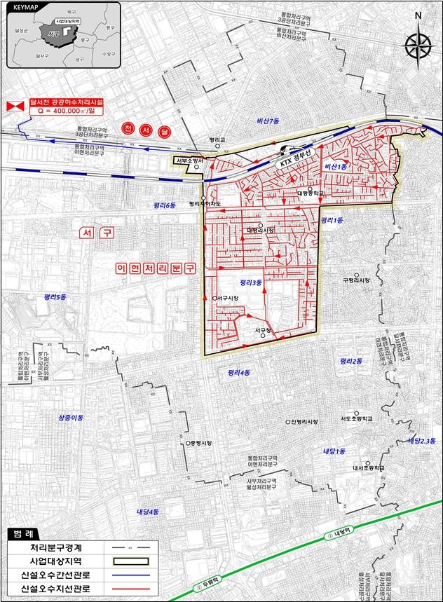 ‘달서천 1구역 하수관로정비 임대형 민간투자사업(BTL)’은 서구 비산·평리동 일원에 총사업비 861억 원을 투입해 37㎞의 오수관로 신설과 3,709가구를 대상으로 배수 설비 정비를 추진하는 대규모 민간투자사업이다.