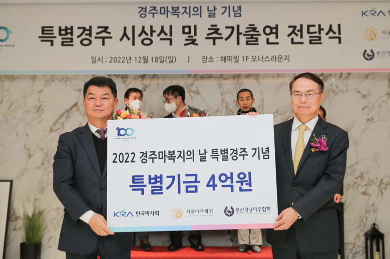 이 외에도 렛츠런파크 서울 현장에서는 장미꽃 응원전과 말복지 퀴즈 대회, 군고구마·붕어빵을 증정하는 송년 고객 사은 먹거리 행사 등 경주마 복지의 날을 기념하기 위한 다채로운 행사로 채워졌다.