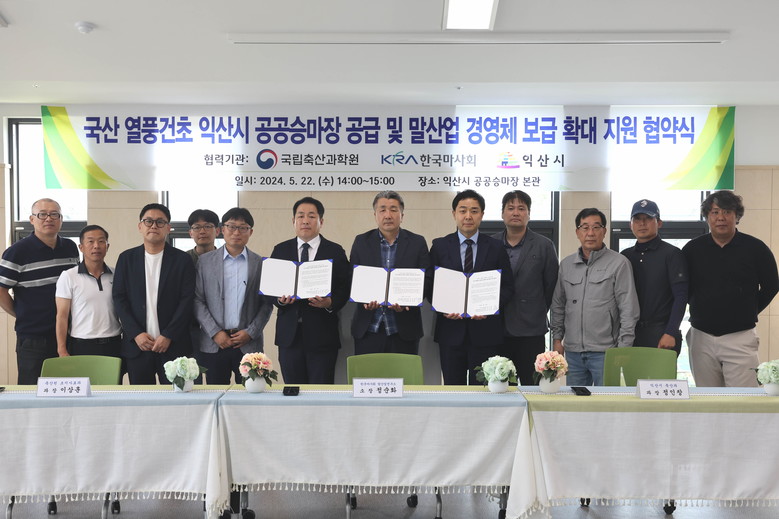 익산시가 말산업특구인 점 등을 전략적으로 활용했다. 마사회-축산과학원-익산시가 함께 공공승마장 및 전북지역 말산업 경영체에 국산 열풍건초 공급을 확대하기 위해 손을 맞잡은 것이다. 이를 통해 국산 열풍건초를 기존 수입 조사료 대비 80% 이하의 가격으로 승마장과 생산농가 등에 보급할 예정이다.
