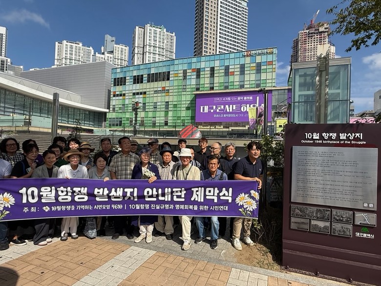 한편 대구시는 2020년 위령탑 건립에 이어, 올해는 대구콘서트하우스 앞에 ‘10월항쟁 발상지 안내판’을 설치했다. (사)10월항쟁유족회는 지난 9월 27일, 자체적으로 안내판 제막식을 개최하기도 했다.