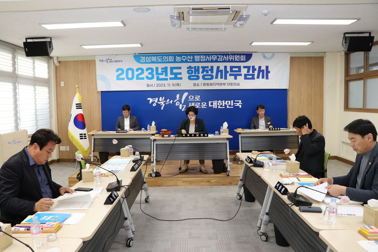 남영숙(상주) 농수산위원장은 2023년 행정사무감사는 현장 농어업인들의 목소리로 채워졌다고 자평했으며, 집행부에도 농어업 현장의 목소리를 듣고 정책에 반영하는 노력이 필요하며, 선진 농어업행정을 하고 있는 타 지방자치단체를 벤치마킹하는 등 농어업인 소득향상과 고령화에 대비한 새로운 농어업기술개발에 노력해줄 것을 당부했다.