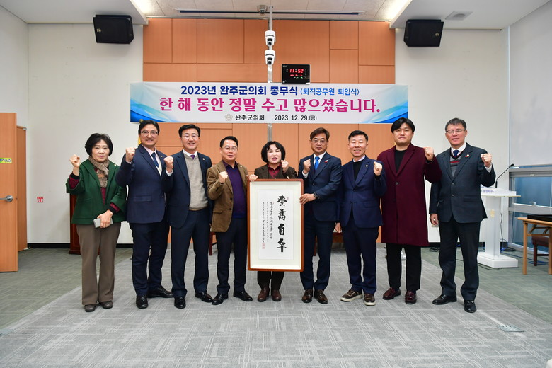 이외에도 올 한해 완주군의회 의정활동을 되돌아보는 영상을 시청했으며, 이후 단체 기념촬영을 마지막으로 종무식을 마무리했다.