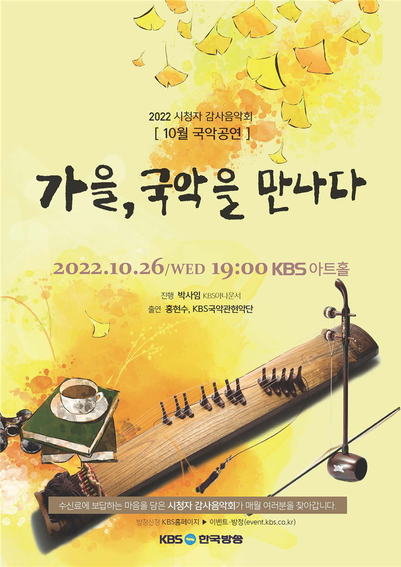 깊어가는 가을, KBS는 시청자 감사음악회 국악공연에서 가을과 어울리는 전통국악 ‘정악’을 바탕으로 가을을 노래하고, 가을을 담아내는 곡들을 선보인다.