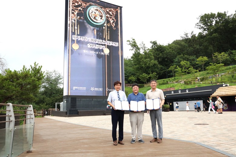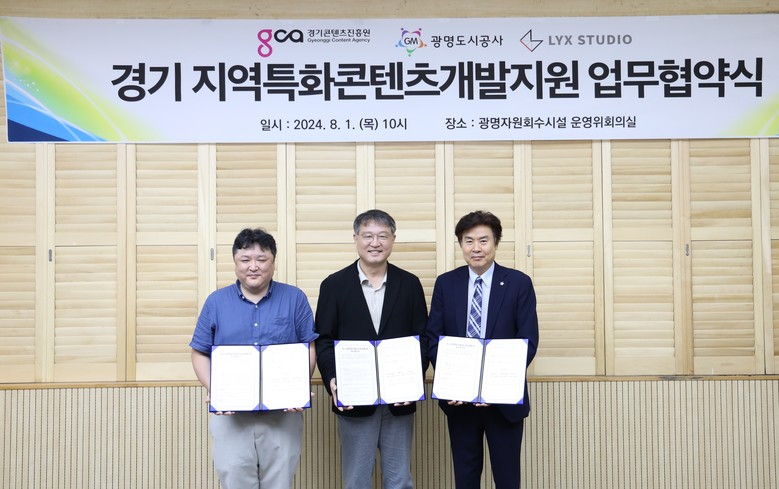 [세계타임즈 = 송민수 기자] 경기콘텐츠진흥원(원장 탁용석, 이하 경콘진), 광명도시공사(사장 서일동), ㈜릭스스튜디오(대표 장정욱, 김현준)은 ‘경기 지역특화 콘텐츠 개발지원’ 사업 공동 추진을 위한 업무협약을 8월 1일 광명동굴에서 체결했다.
