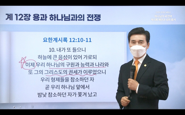 이날 강의에서 정지파장은 '이제 우리 하나님의 구원과 능력과 나라와 그리스도의 권세가 이루어졌다'는 10절과 여러 형제가 용의 무리와 싸워 이긴 무기로 어린양의 피와 증거하는 말이 나오는 11절을 강조했다.