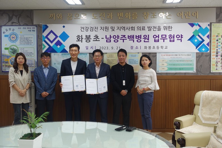 [남양주시 세계타임즈=송민수 기자] 경기도구리남양주교육청 화봉초등학교(교장 서동연)는 9월 20일 남양주백병원(원장 최선종)과 업무협약을 체결했다고 밝혔다.