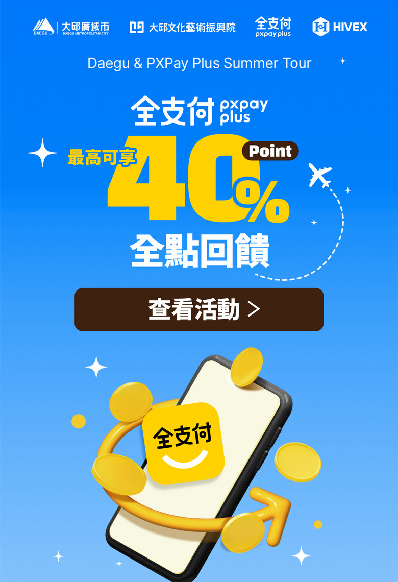 또한 대구시와 문예진흥원이 직접 인증한 외국인 친화형 필수 방문지인 ‘대구여행상점’ 15개소에서 PXPay Plus로 결제하고 내역을 인증하면 다이소 기프트카드(1만 원권)도 받을 수 있어 여행 만족도를 더욱 높일 전망이다.
