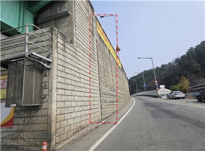 공사구간은 원촌육교 램프-B(원촌교네거리에서 신탄진방향 진입부) 측면 보강토옹벽이다.