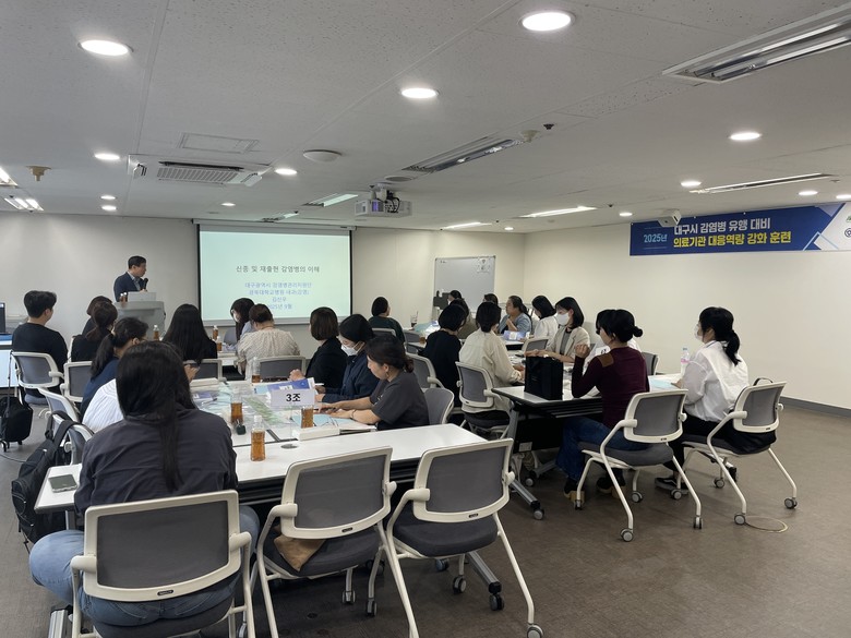 훈련 프로그램은 실제 현장에서 즉시 활용할 수 있는 실무 중심 교육으로 구성됐으며, ▲신종 및 재출현 감염병의 이해(김신우 대구시 감염병관리지원단장) ▲감염병 역학조사 및 관리(김윤주 부단장) ▲시나리오 기반 모의훈련 순으로 진행됐다.