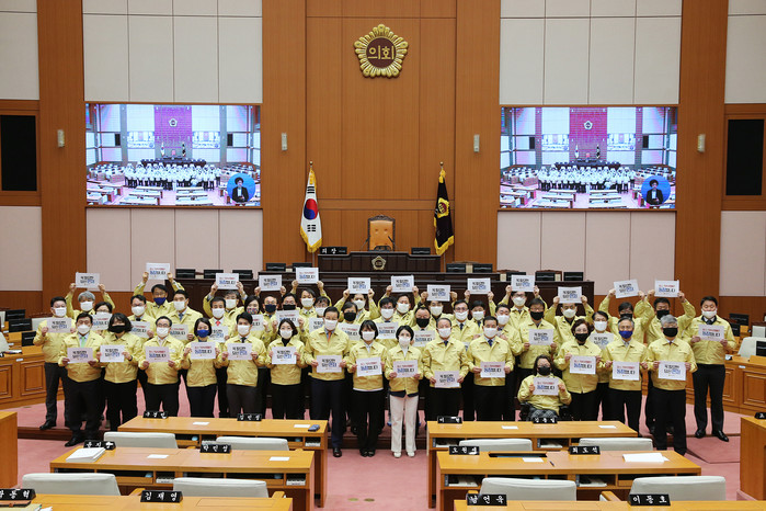 코로나19 감염 확산 방지를 위해 시의회는 본회의장 입구에 체온측정기와 손소독제를 비치했으며 시의원들은 민방위복과 일반 면마스크를 착용하고 본회의장에 착석했다.