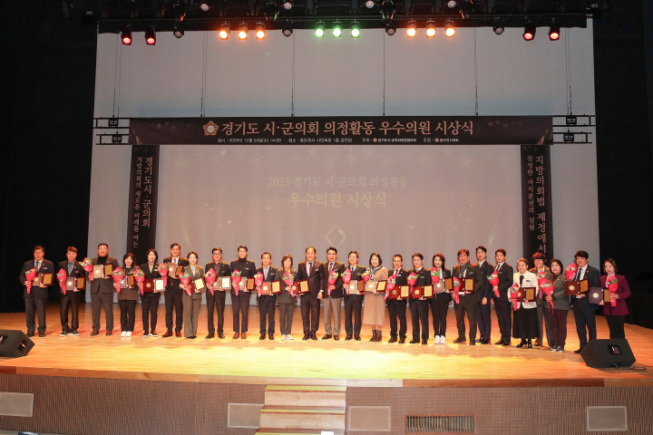 이번 시상은 경기도시·군의회의장협의회가 매년 도내 31개 시·군의회 의원들의 의정활동 전반을 종합적으로 살펴, 시민 복리 증진과 지역 발전에 기여한 의정활동 사례를 선정해 수여하는 제도로, 올해는 총 11개 분야에서 평가가 이뤄졌다.