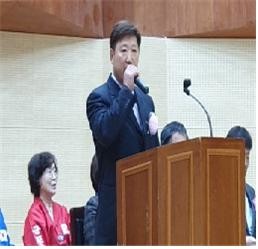 | ▲안양시 용무도협회 김병묵 회장의 대회사 모습 |