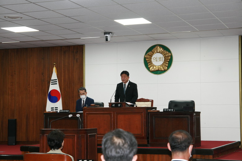 이동호 의장은 개회사를 통해 “이번 정례회가 행정의 투명성과 신뢰성을 향상하고 시민의 알권리 제공을 위해서 알차고 내실 있는 회기가 되길 바란다 ” 며 “모든 문제에 있어 가장 중요한 선택의 기준은 시민 행복과 지역발전이라는 것을 명심하여 의정과 시정을 펼쳐야한다”고 말했다.