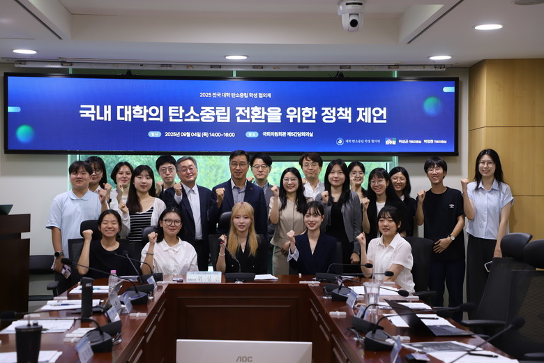 위성곤 위원장은 개회사를 통해 “ 대학의 탄소중립 이행은 단순한 온실가스 감축을 넘어 사회적 · 교육적으로 큰 상징성을 갖는다 ” 며 , “ 특히 학생 · 교수 등 모든 대학 구성원이 탄소중립을 실천하고 내재화할 수 있도록 제도적 기반을 구축하고 , 탄소중립 이행을 촉진하는 물품 조달방안을 도입해야 한다 ” 고 강조했다 .