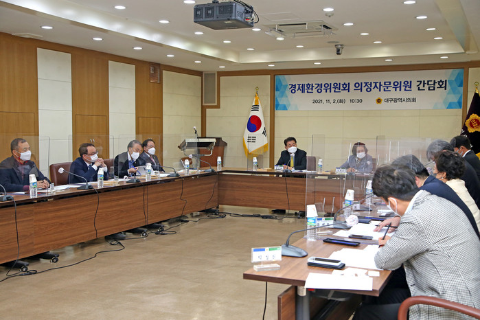 [대구=세계타임즈 한성국 기자] 대구광역시의회 경제환경위원회(위원장 홍인표)는 행정사무감사와 내년도 예산심사를 앞두고 11월 2일(화) 오전 10시 30분 시의회 3층 회의실에서 경제‧산업‧환경분야 등 외부 전문가로 구성된 의정자문위원과 소속 의원 간 간담회를 개최하여 시정 주요 현안에 대한 전문가 의견을 청취하고 토론하는 시간을 가졌다.