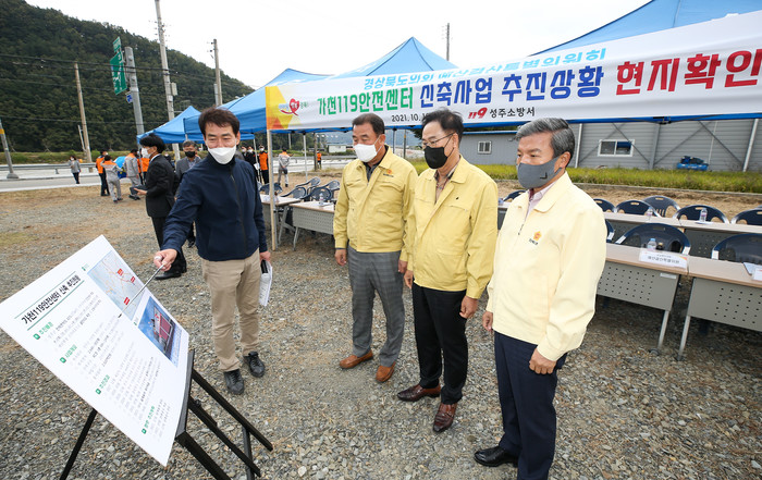 다음으로 방문한 성주 가천119안전센터 신축현장에서는 사업추진 전반에 대한 현황을 청취하고, 재난현장에서 고생하는 일선 소방서 직원들을 격려했다. 아울러 성주군 총면적 616㎢ 중 42%(257㎢)의 면적에 안전센터가 없어 지역주민이 재난현장에 무방비 상태로 노출됐던 상황을 성주 가천119안전센터 신축사업을 통해 해소하고, 균등한 소방서비스가 제공될 수 있도록 관계자들의 적극적인 역할을 강조했다.