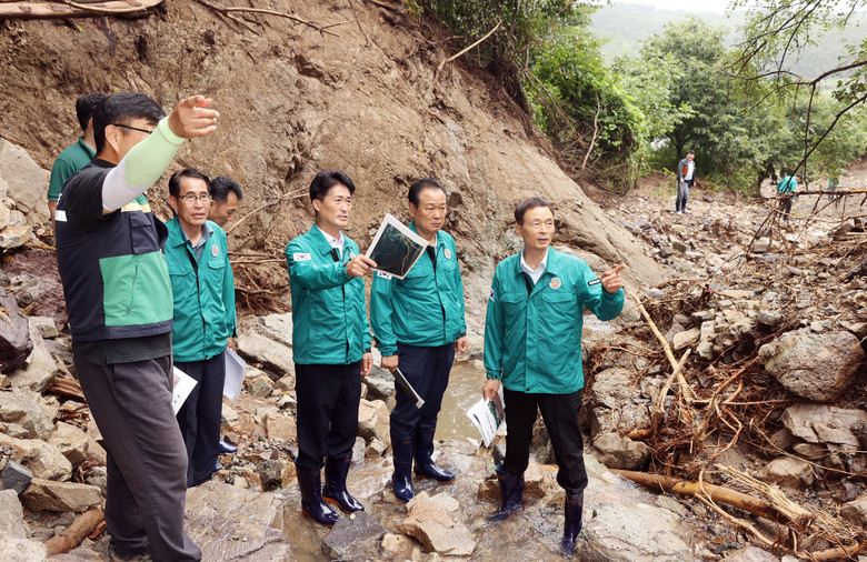 이 의장과 의원들은 먼저 옥천군 이원면 원동리 산사태 현장을 방문해 피해 상황을 보고받고 수해복구 관계자들을 격려했다.