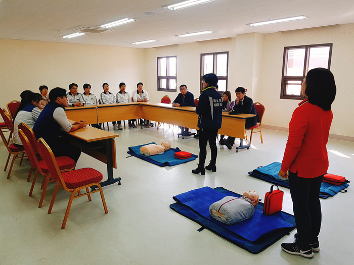 이날 교육은 서귀포소방서 중문119센터 전문가들이 진행하는 위기 상황 행동 요령, 심폐소생술 기본 원리 등 이론 교육과 마네킹을 이용한 실습 교육으로 진행됐다.