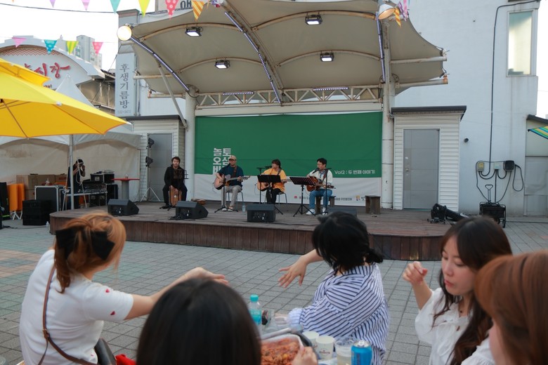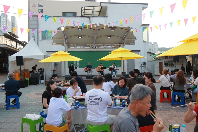 지난 토요일 동쪽바다중앙시장 야외광장에서 열린 첫 행사에는 약 500여 명의 시민이 참여해 불 꺼진 광장을 음악과 웃음으로 가득 채웠다.