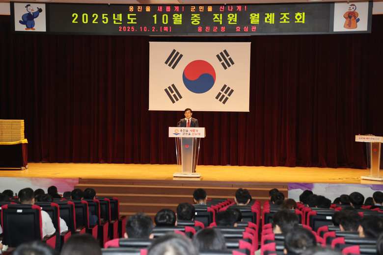 [옹진군 세계타임즈=심하린 기자] 옹진군(군수 문경복)은 2일, 군청 효심관에서 전 직원들이 참석한 가운데 ‘10월 중 월례조회’를 개최하고, 2026년 본예산 편성과 연말 사업 마무리, 가을철 재난 대비 및 추석 연휴 대응 방안 등을 공유했다.
