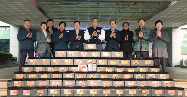 군은 지난 13일 군청 현관 앞에서 가세로 군수와 장대옥 지부장을 비롯해 명헌식 부지부장 등이 참석한 가운데 기탁식을 열고 국거리용 한우 125박스(400여만 원 상당)를 전달받았다.