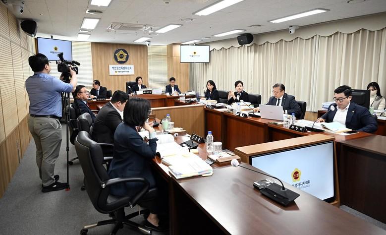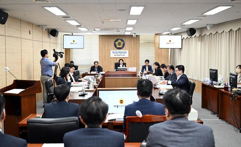 [세종 세계타임즈=이채봉 기자] 세종특별자치시의회(의장 이순열) 예산결산특별위원회(위원장 김현옥)는 제88회 임시회 기간 중인 18일부터 20일까지, 3일간 예결특위 위원 9명이 참석한 가운데 ‘2024년도 세종특별자치시 제1회 추가경정 예산안 및 기금운용계획변경안’에 대해 심도 있는 심사를 했다.