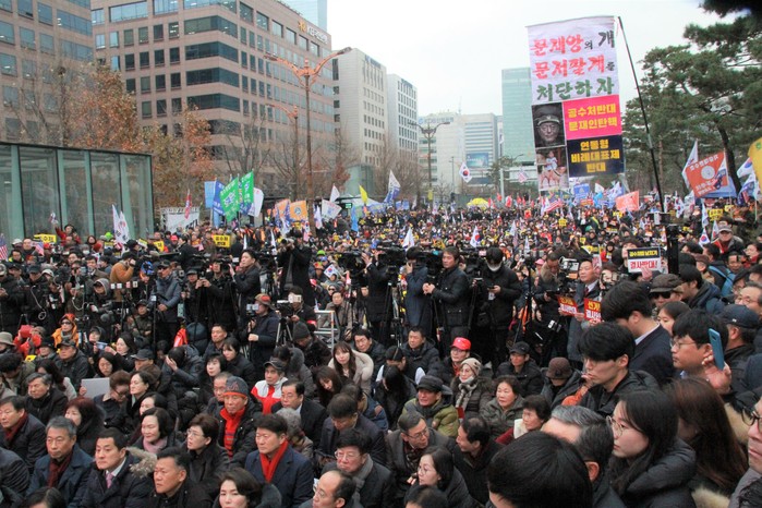 [세계타임즈 이판석 기자] 자유한국당 황교안 대표와 의원들이 17일 오후 서울 영등포구 여의도 국회앞 에서 열린 '공수처법 선거법 날치기 저지 규탄대회'에서 모두발언을 하고 있다.
