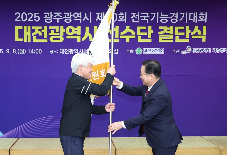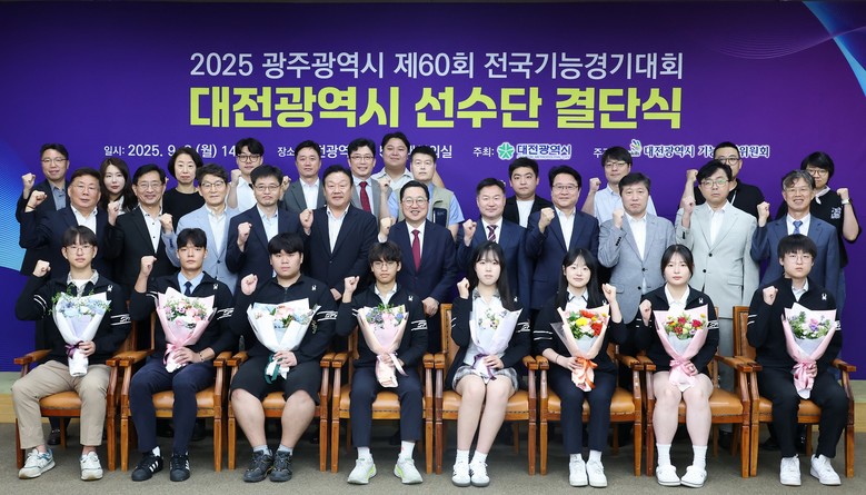 [대전 세계타임즈=이채봉 기자] 대전시는 9월 8일 오후 시청 대회의실에서 제60회 전국기능경기대회에 참가하는 대전선수단 결단식을 열었다. 이번 행사에는 이장우 대전시장을 비롯해 유지완 대전시 부교육감, 송인석 대전시의회 산업건설위원장, 고재철 한국산업인력공단 대전지역본부장 등 주요 내빈과 대회 참가 학교 교장단, 지도교사, 선수단 등 40여 명이 함께해 선수들의 선전을 기원했다.