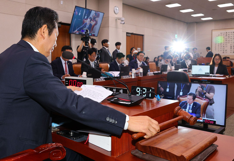 24일 오전 국회에서 법제사법위원회 전체회의 정청래 위원장이 의사봉을 두드리고 있다. 2024.7.24[사진=연합뉴스]