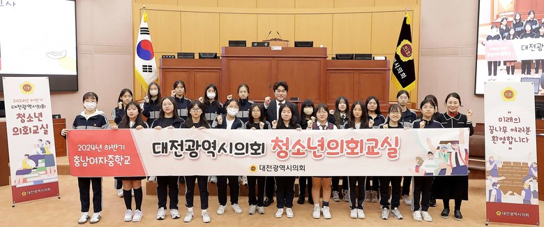 [대전 세계타임즈=이채봉 기자] 대전시의회(의장 조원휘)는 1일(금) 충남여중학교 학생들을 대상으로 2024년 하반기 두 번째 청소년 의회교실을 개최했다.