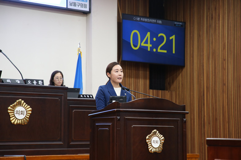 [남동구 세계타임즈=심하린 기자] 인천 남동구의회 이연주 의원은 13일 열린 제288회 임시회 1차 본회의에서 5분 자유발언을 통해 치안 사각지대 최소화를 위한 공원 내 CCTV 설치 확대를 촉구했다.