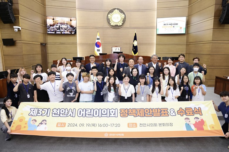 제3기 천안시 어린이의회(이하 어린이의회)는 관내 어린이들의 민주시민 역량과 리더십 강화에 기여하고자 하는 목표를 갖고, 7월 22일 발대식을 가졌다. 이후 정책개발, 입법절차, 회기기법 등 지방의회 관련 교육과 의정 체험활동을 수행함으로써 민주적 의사결정 절차를 배우고 지방의원 모의활동(role-playing) 등을 경험했다.