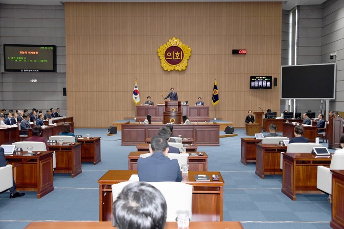 김동찬 의장은 “이번 임시회를 통해 진행되는 시정질문으로 시정 운영사항을 꼼꼼하게 살피고 미비한 점은 개선될 수 있도록 동료의원님들의 수준 높은 질문과 집행부의 성실한 답변을 기대한다”며, “이번 임시회도 광주 안고 있는 당면 현안들의 슬기로운 해결을 위해 보람된 회기가 될 수 있도록 의회와 집행부 모두가 최선을 다해주기 바란다”고 강조했다.