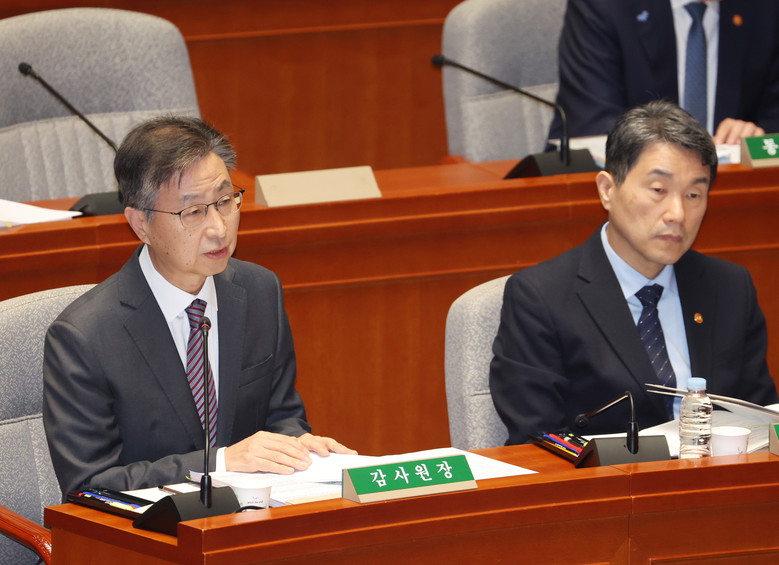 최재해 감사원장이 13일 국회에서 열린 예산결산특별위원회 전체회의에서 의원 질의에 답하고 있다. 2024.11.13