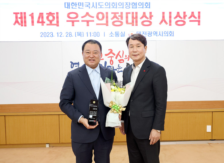 [대전 세계타임즈=이채봉 기자] 대전시의회 산업건설위원회 송대윤 의원(더불어민주당, 유성구2)이 지난 28일‘대한민국시도의회의장협의회’에서 선정하는 2023년 제14회‘우수의정대상’수상자로 선정되는 영예를 안았다.