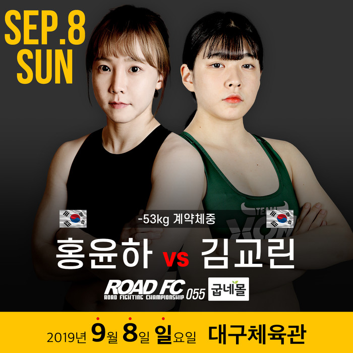 [세계타임즈 김인수기자] 김교린은 9월 8일 대구체육관에서 열리는 굽네몰 ROAD FC 055에 출전, ‘케이지의 악녀’ 홍윤하(30, 송탄MMA 멀티짐)와 대결한다.