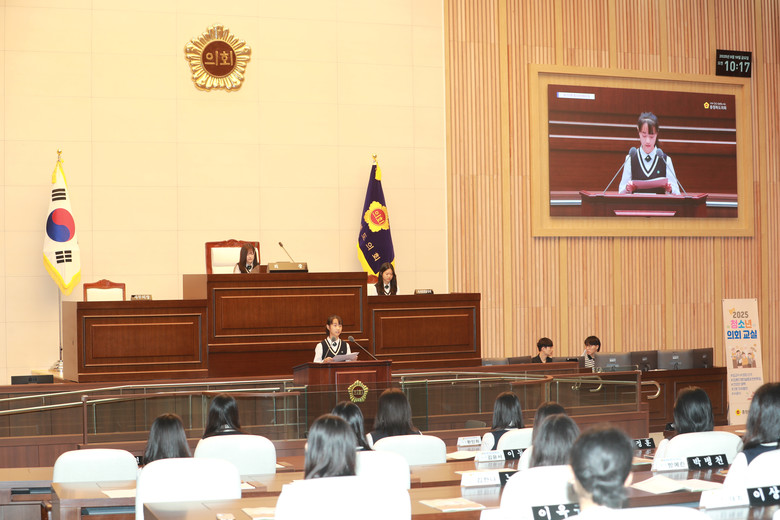 청소년 의회교실은 학생들이 1일 도의원이 되어 의장 선거, 안건처리, 2분 자유발언 등 의정활동을 본회의장에서 직접 체험하는 프로그램이다.