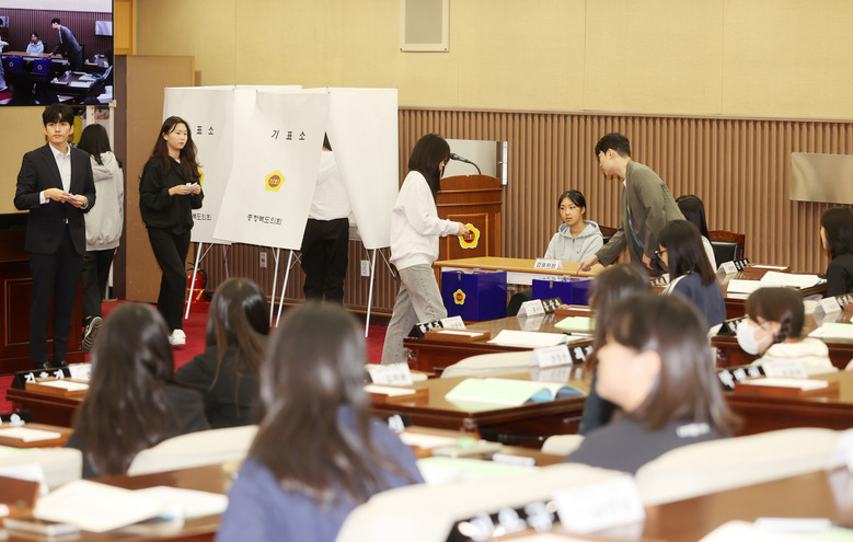 음성여중 학생들은 무기명 투표를 통해 청소년 의장을 선출하고 ‘탄소중립 의무화 규정 도입 조례안’과 ‘학생들의 급식 의견 제시 건의안’, ‘학급회의로 시간표 짜기 건의안’ 등 3건의 안건을 심의‧의결했다.