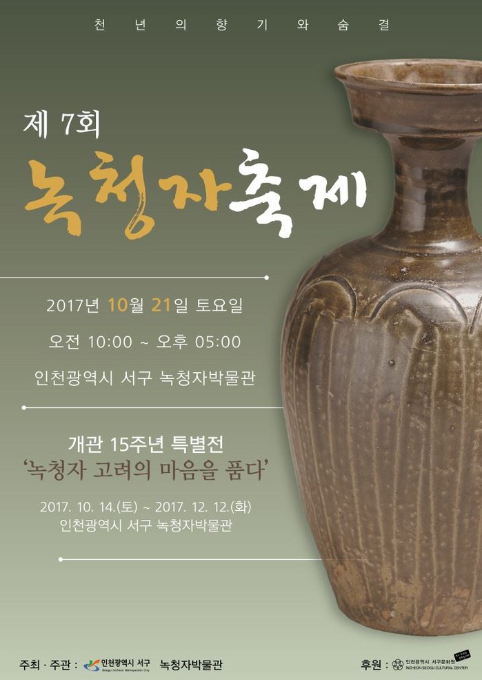 [서구=세계타임즈 심동윤 기자] 인천시 서구 녹청자박물관은 ‘천년의 향기와 숨결’이라는 주제로 ‘제7회 녹청자 축제’ 및 ‘녹청자박물관 개관 15주년 특별전 기념식’을 경서동 녹청자박물관 일원에서 오는 21일 개최한다고 밝혔다.